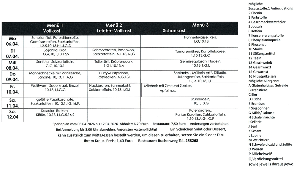 Die aktuellen wöchentlichen Speisepläne